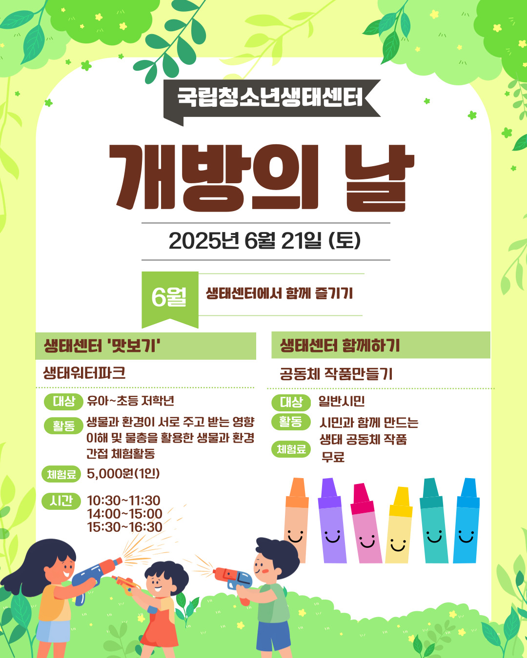 2025년 국립청소년생태센터 6월 개방의 날 안내